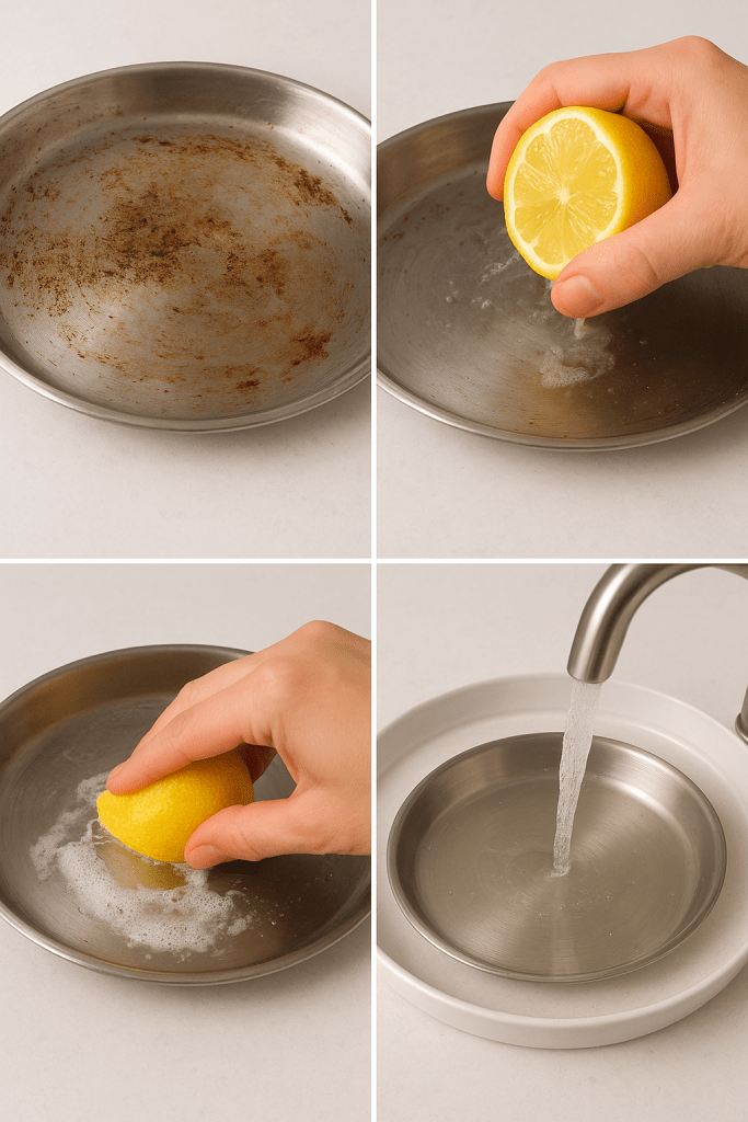 A cut lemon is one of nature’s best cleaners. Simply rub it over your taps, sinks, or any stainless steel surface to cut through grease and water spots. Rinse with warm water and buff dry with a soft cloth — instant shine, zero chemicals.